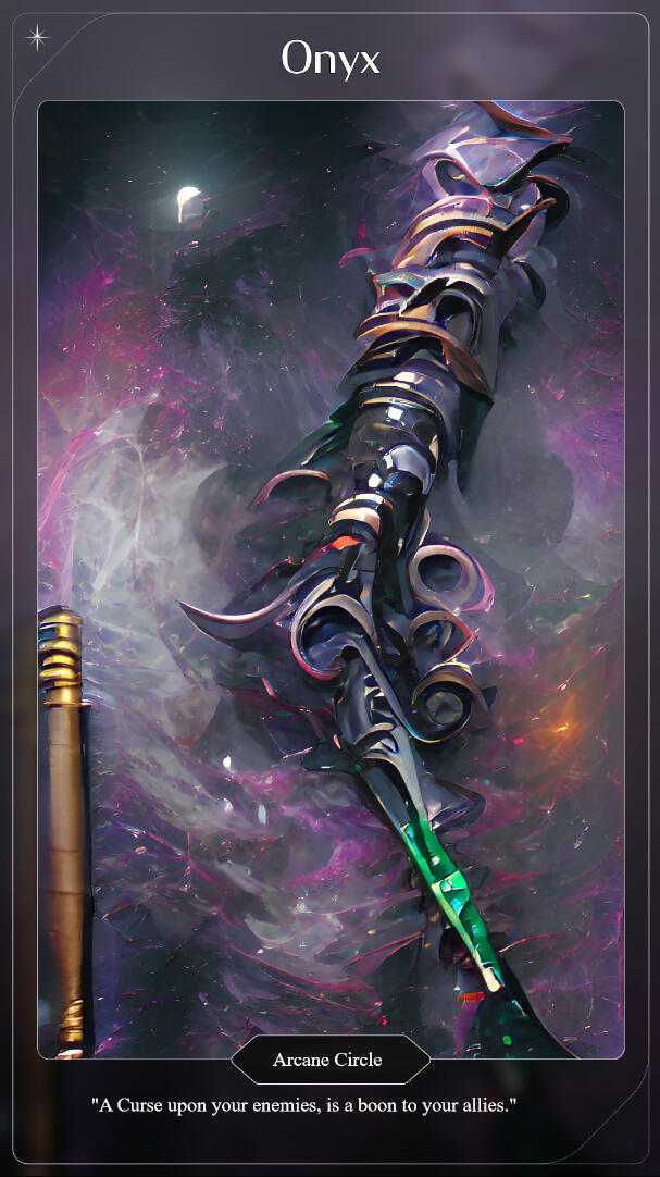 The Manipulation of Fate is not as flashy or obvious as other forms of attack. But in some situations, it can be exactly what is needed to turn the tides of war in your favor. In the wrong hands, this sort of power can topple empires. Or perhaps the right hands, depending on your perspective.Riah obtained Onyx by assisting a group of rebels in toppling an oppressive theocratic government - It was gifted to her as a sign of good faith.