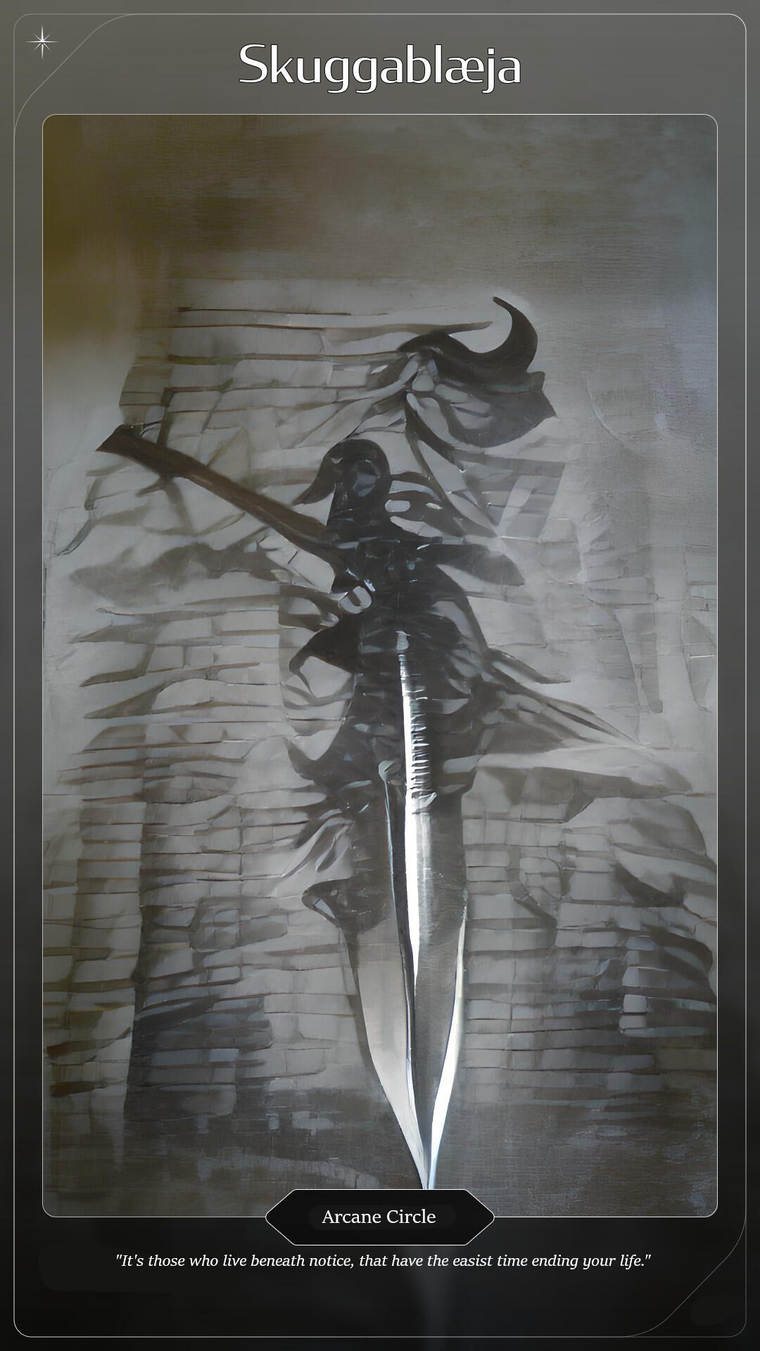 Mechanics:Shadow Meld - So long as there is darkness in an area, you will be able to intermingle with it. Encompass yourself in darkness and become invisible to the naked eye, allowing you to strike unseen.Vampire's Favor - At night, you are able to transform into a cauldron of bats. You cannot attack, or be attacked, while in this form.Soul of Riskel - When attacking an enemy that is not already engaged in combat, from behind, or after using Shadow Meld, add an additional +10 to your attack, and deal an extra 15 damage.Soul of Sorina - Once per day, shroud the entire area around you in a cloud of darkness, blinding all enemies in the area and allowing your allies an opportunity to escape from combat. Teleport self and allies to the nearest safe area.Soul of Kayne - Three times per day, you are able to cast a ranged attack of pure dark energy with advantage. If it lands, deals 30 damage and swaps your position with theirs. Alternatively, swap places with an ally. Both you and your ally gain 15 HP.Soul of Viktor - Any damage dealt with this weapon deals an additional 10 Necrotic damage, and heals the wielder for an equal amount. Once per day, you can attempt a powerful necrotic heal, to deal 35 damage, and restore 35 HP.