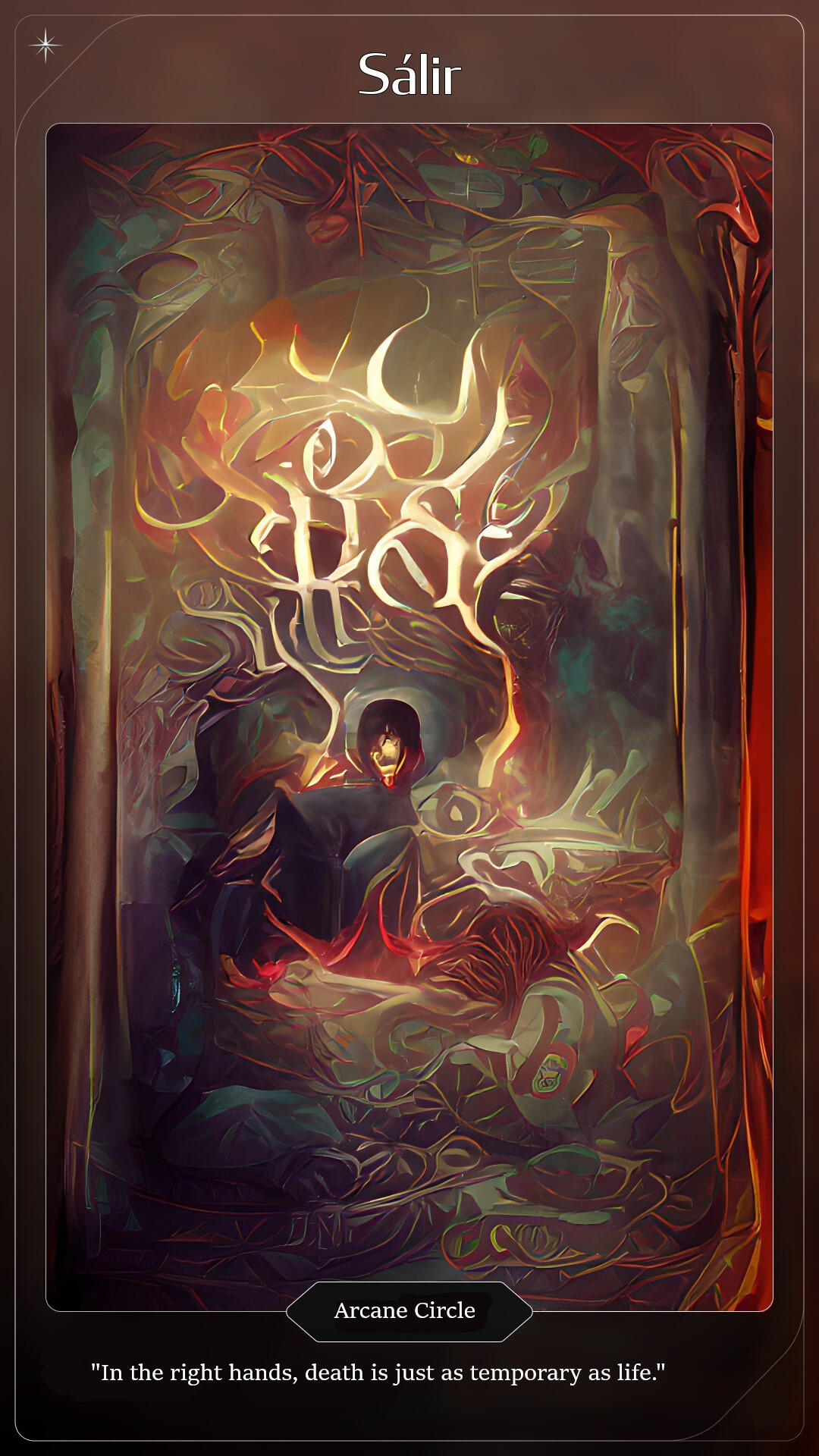Once thought to be a tome, Salir was actually an ancient soul crystal. The symbols and etchings upon it, the very same used by Necromancers, and Liches alike. It is unlike any focus she's used before.