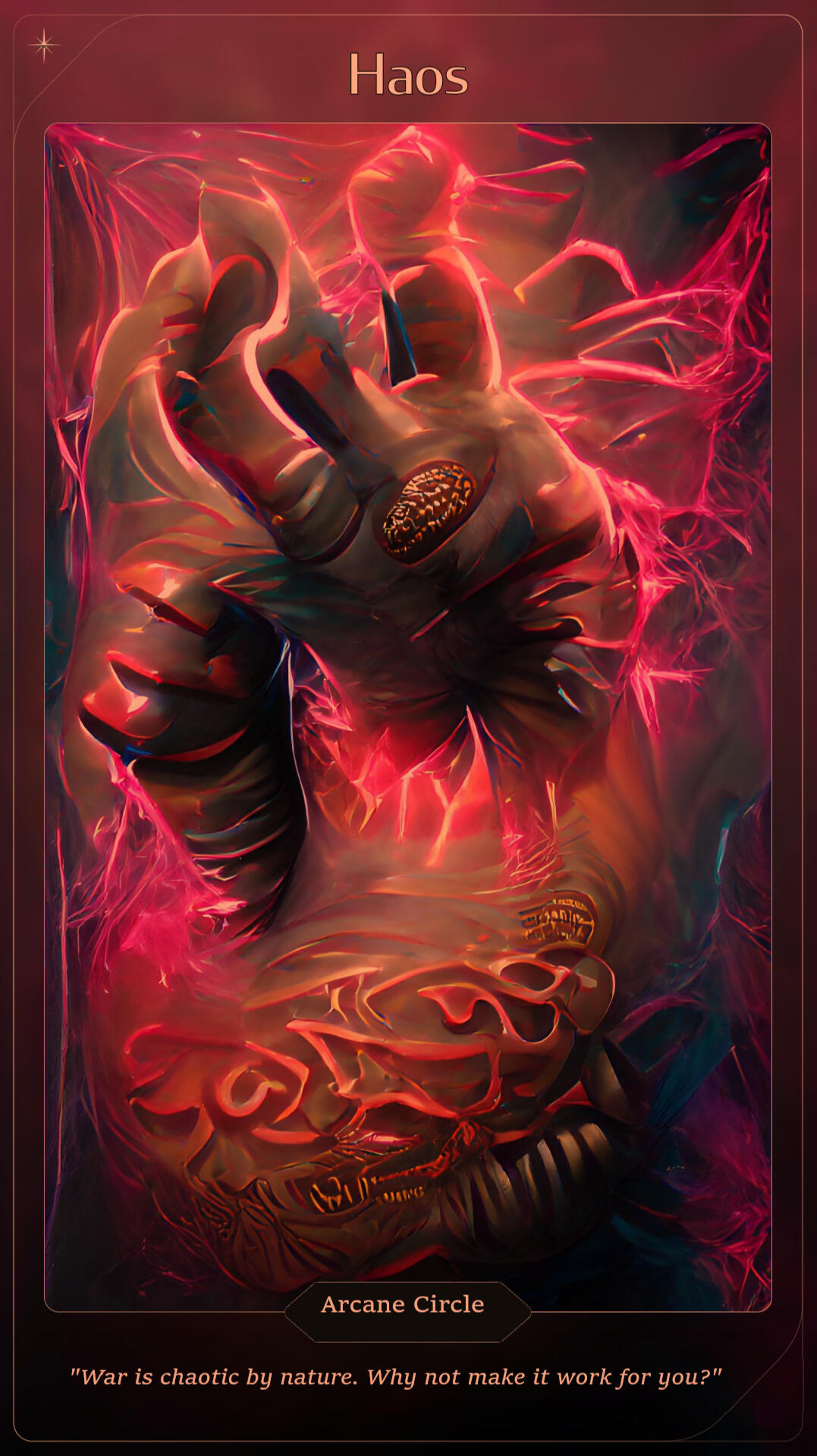 6.) Atomic Fist - Deal and additional 30 Damage, and stun any enemy for one turn.Havoc - Three times per day, unleash havoc. Focus three powerful attacks on an enemy in a single turn, adding Haos's Mayhem mechanics add the end of the turn.Madness - Strike an enemy and inflict a state of madness for 3 turns. While in a state of madness, all rolls carried out by this enemy have disadvantage, and attack damage is half reflected back on them. This skill can be used once per day, however, you can continue attempting to use it until it lands successfully.Pandemonium - Once per day, smash your fists into the ground and unleash a torrent of chaos over the entire battlefield, causing any enemy who fails a willpower DC of 15 to waste their strongest available attack on their own ally, or their strongest heal on one of your allies.