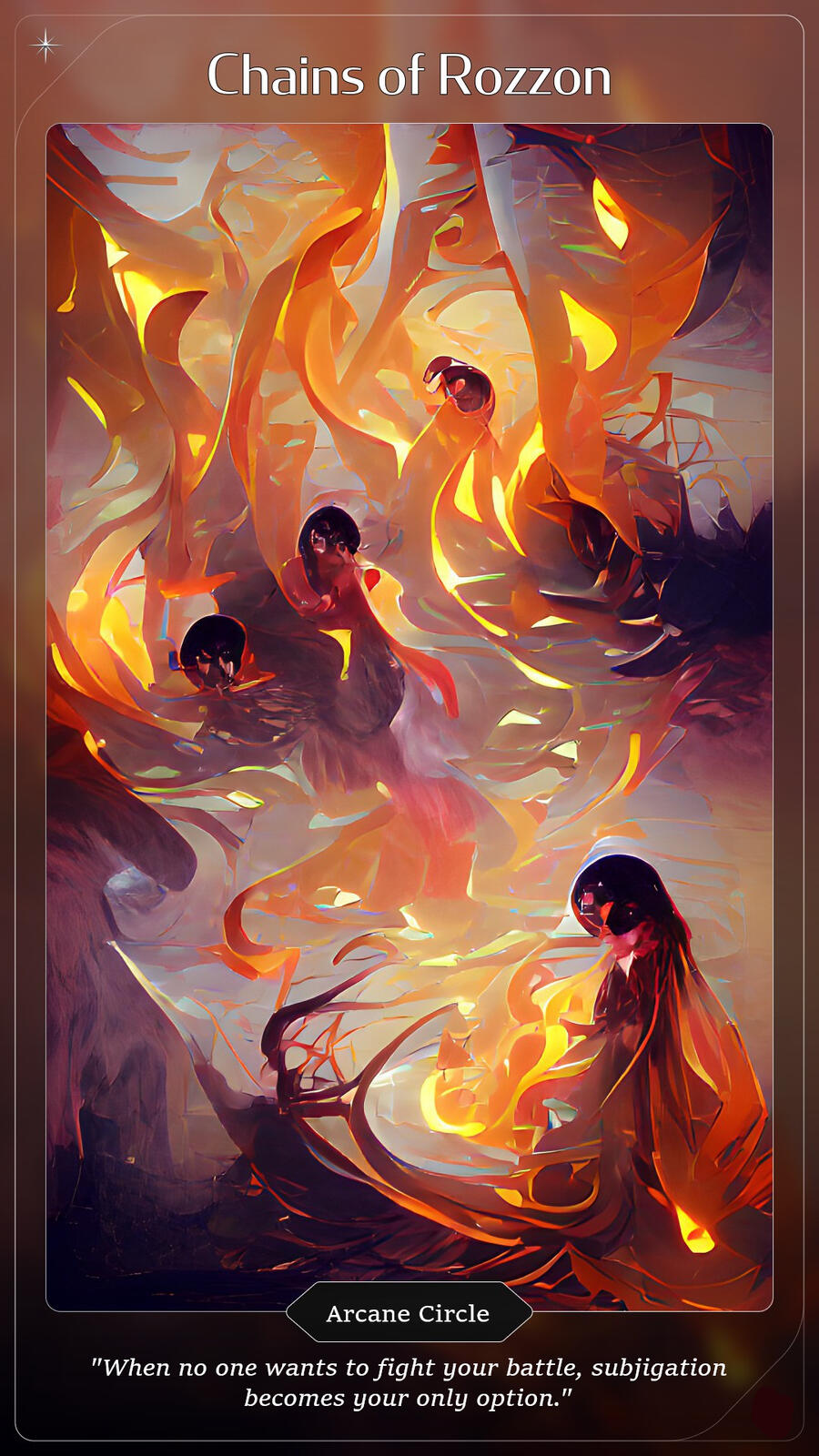 General Information— The Chains of Rozzon were at one point the primary weapon of a demonic jailer, who was capable of twisting the souls of the dead to do his bidding— Rozzon's chains still have a significant amount of power left in them, even after his death. Long range, the ability to inflict fire damage as well as toss smaller enemies across the battlefield, or bind them in place.
