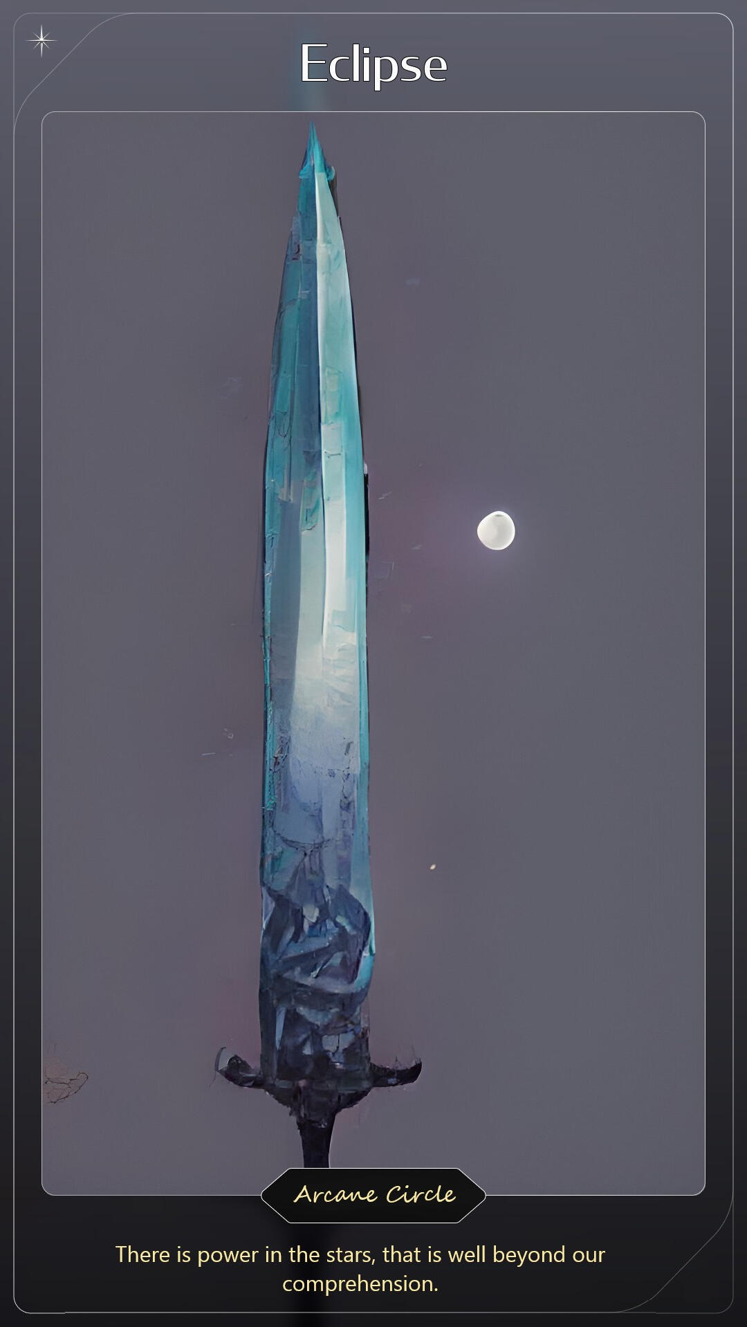 Forged from the heart of a being that is older than the stars itself, the blade known as Eclipse is truly one of a kind.